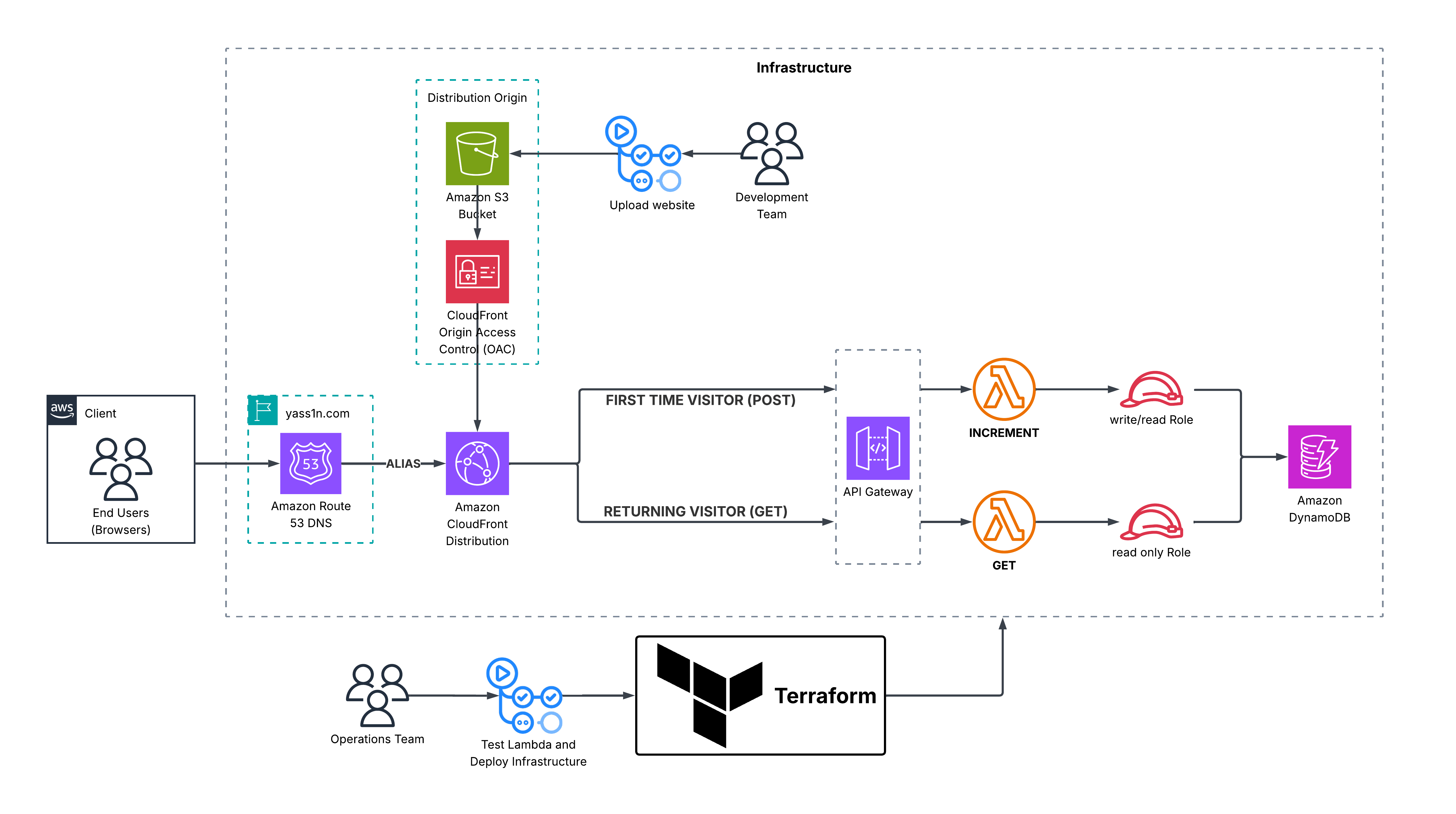 - Frontend (Website): This pipeline uploads webpage changes to the S3 bucket and invalidates the CloudFront cache, making the updates immediately available to users worldwide.