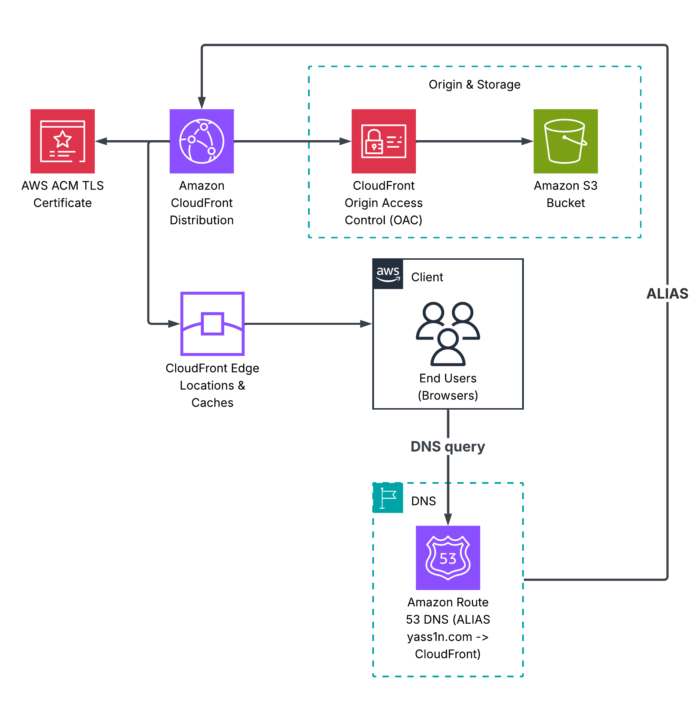 - Add Route53 A and AAAA records pointing to your CloudFront distribution